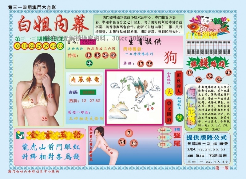 | 314期 | 虎 | 7尾 | 0头 | 羊23 |