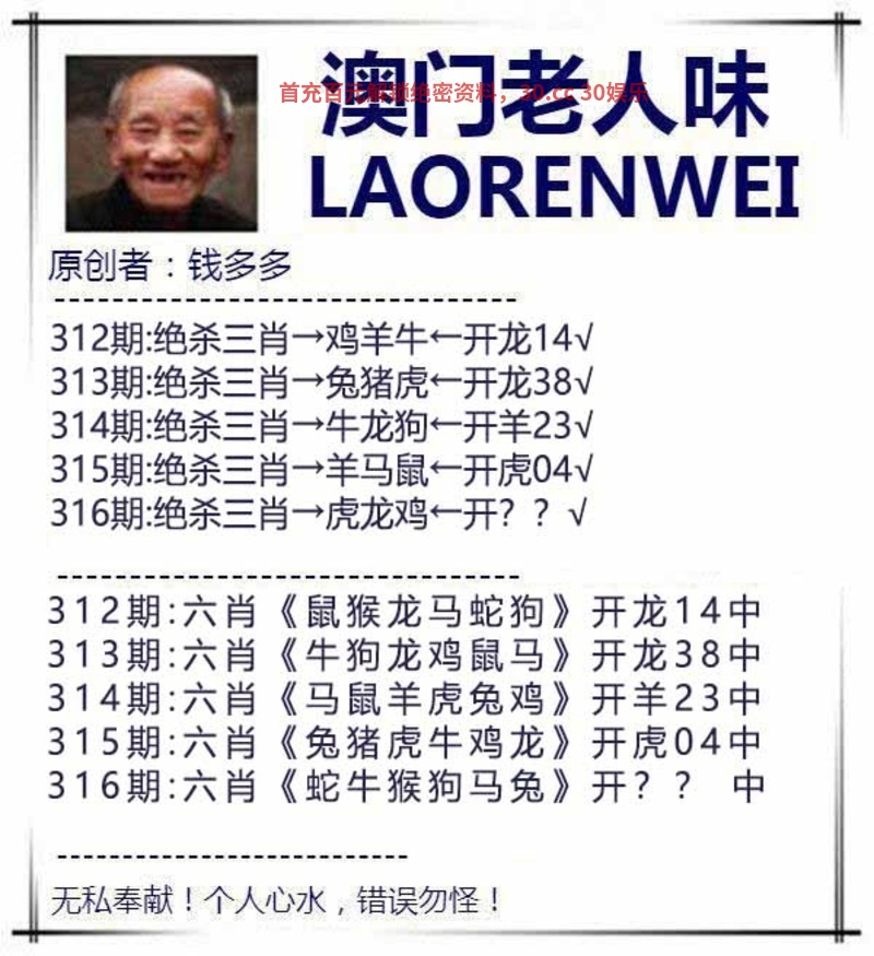 314期:绝杀三肖【龙虎鼠】开:羊23准